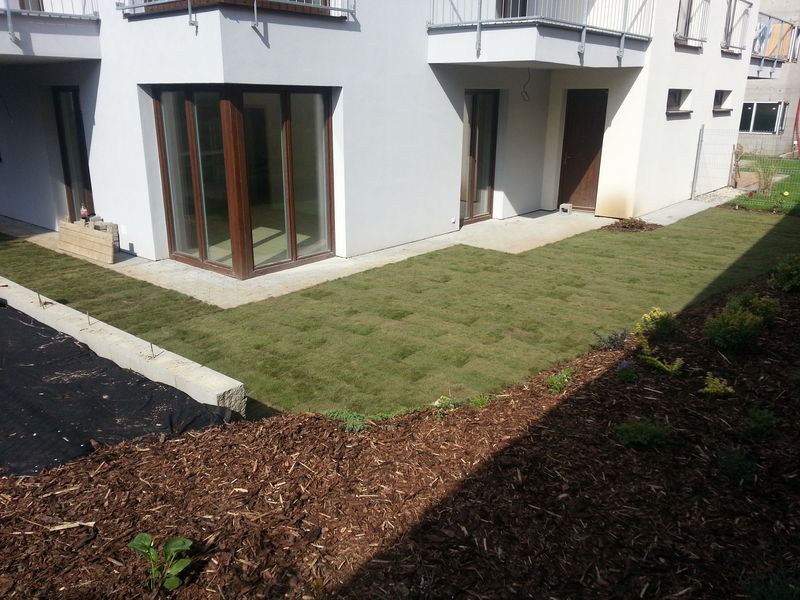 Připravíme plochu pro založení trávníku výsevem nebo travním kobercem. Provede se založení trávníku.